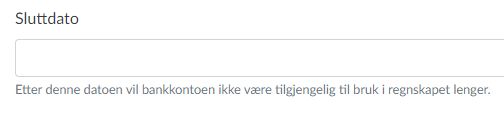 Hvis du har brukt privatkontoen til å sende kundefakturaene, vil du ikke kunne fjerne bankkontoen i regnskapssystemet. Det du kan gjøre er å legge inn en sluttdato på bankkontoen, som er etter en dato etter den fakturadatoen du brukte på den sist sendte fakturaen.