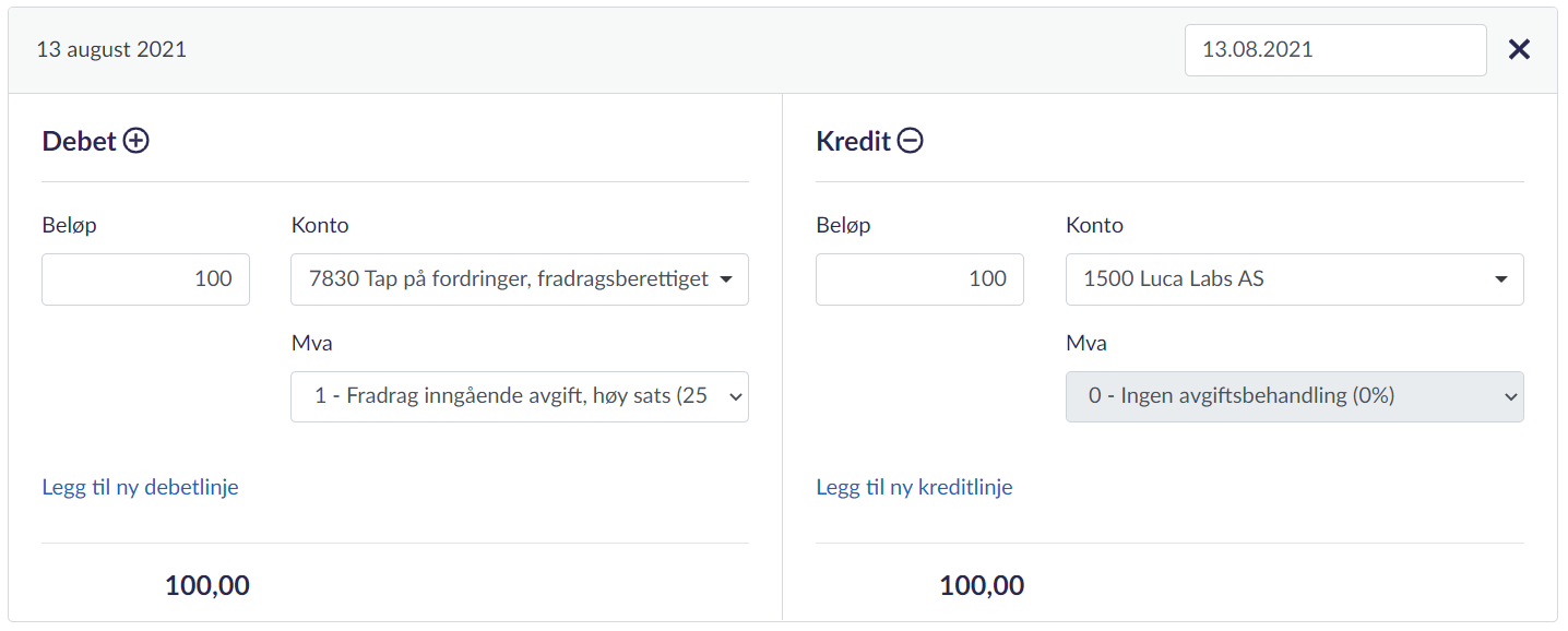 Legg inn dato (vanligvis dagens dato) og en kommentar som begrunner tapsføringen