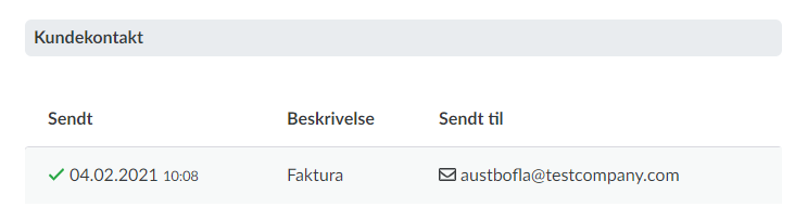 Gå inn på fakturaen du vil sjekke, og se under “Fakturautesendelser” om fakturaen har blitt sendt. Hvis du ser et grønt “check-mark” her, betyr det at den har bitt sendt riktig. Da har du “bevis” på at den faktisk ble sendt.
