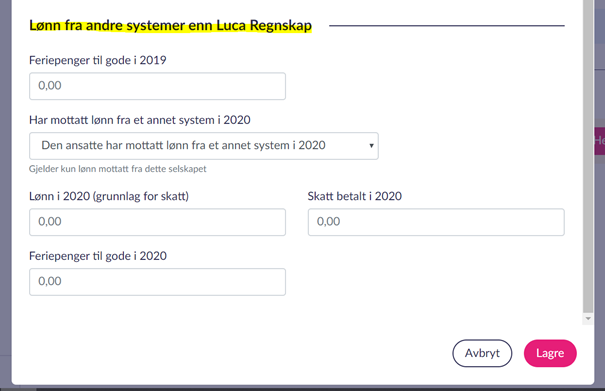 For eksempel, du startet å føre ditt regnskap hos oss fra 01.01.2026. Du har kjørt lønn i et annet system for januar 2026, og ønsker å registrere dette i det nye systemet. Dette støtter vi ikke per dags dato, men vi kommer til å støtte dette i fremtiden.