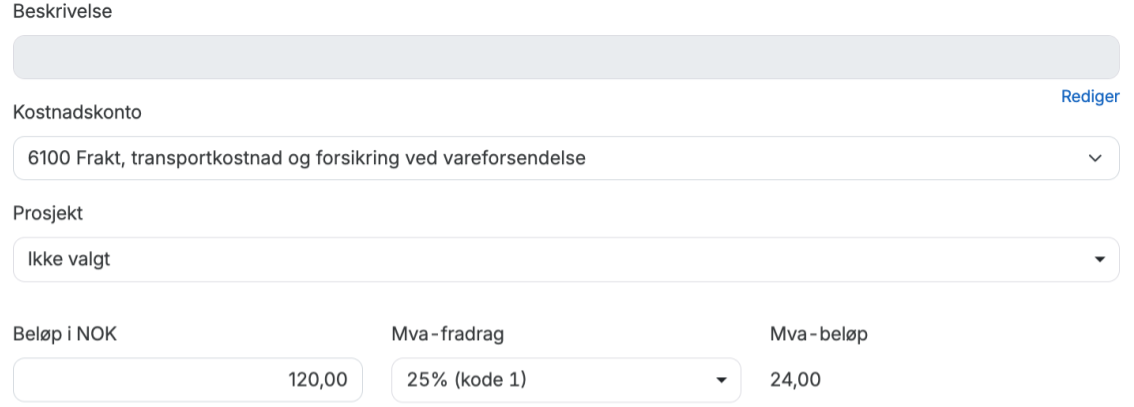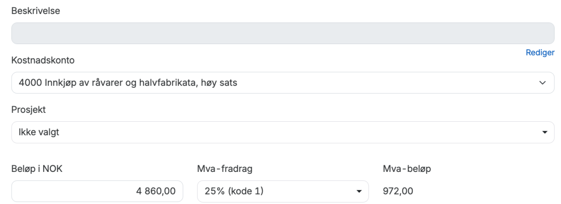 5. Legg inn beløpet for varekostnaden - den finner du på kvitteringen for varekjøpet