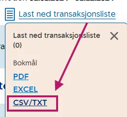 Velg kontoen du skal hente transaksjoner fra
