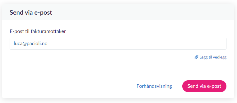 2. På skjermen hvor du velger hvordan fakturaen skal sendes, klikk på “Legg til vedlegg”