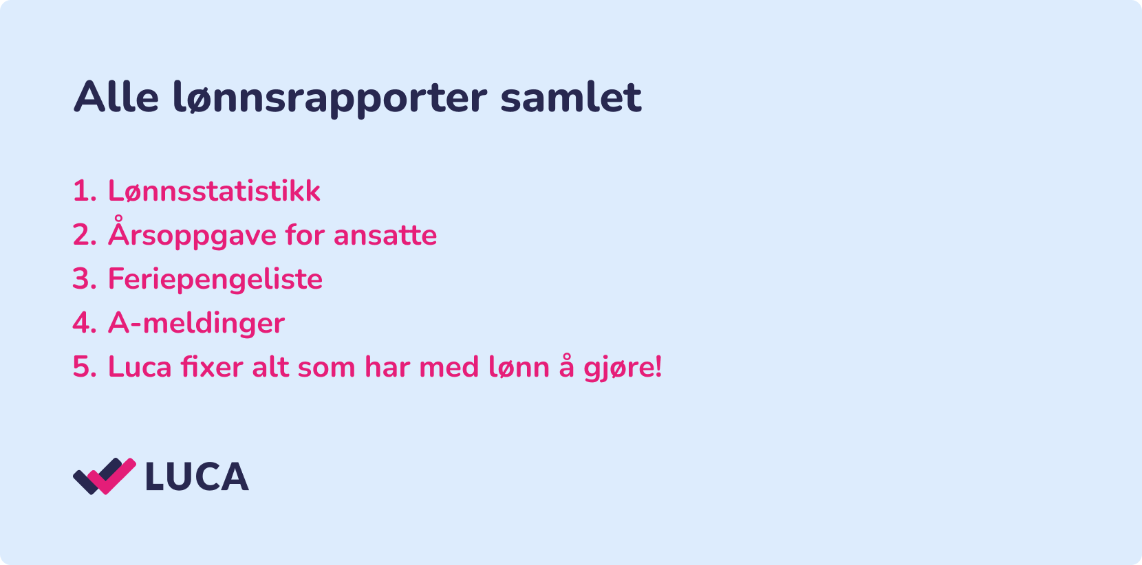 • Kjør lønn på 1-2-3 – Luca tar seg av det meste!