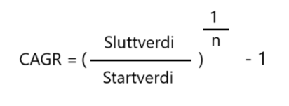 CAGR står for “Compound Annual Growth Rate”, på norsk betyr “Sammensatt Årlig Vekstrate”, og er et nyttig verktøy for å sammenligne veksten av investeringer over tid.