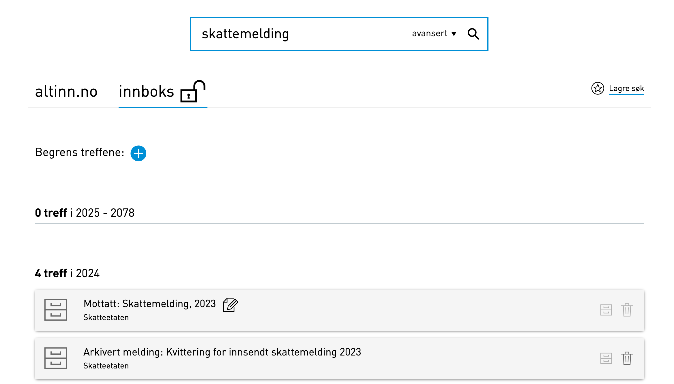 Signert og levert årsregnskap vil se slik ut din Altinn innboks: