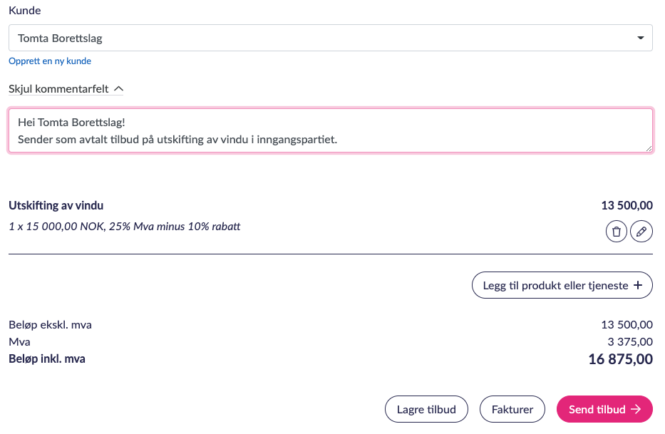 - Bruk tekstfeltet til å få med hva tilbudet gjelder.