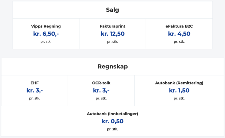 - 500 EHF-fakturaer – kostnaden er 3,38 kroner per stk