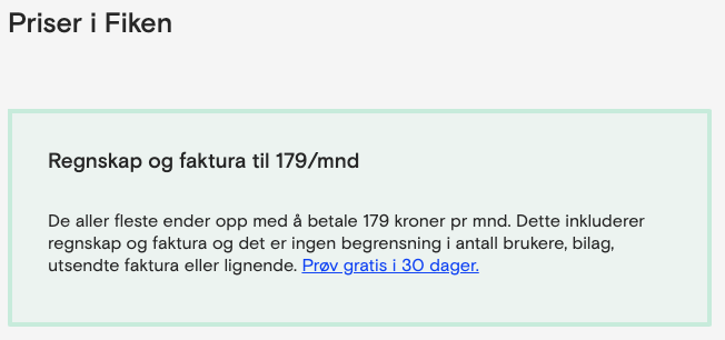 - Fiken regnskap - 179 kroner per måned = 2 148 kroner per år