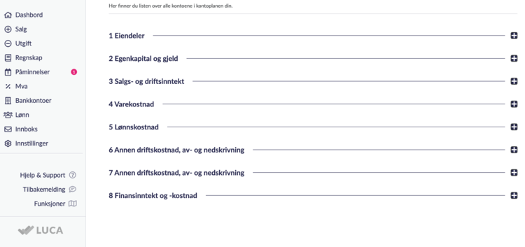 Tilpass din egen kontoplan inne i Luca Regnskap