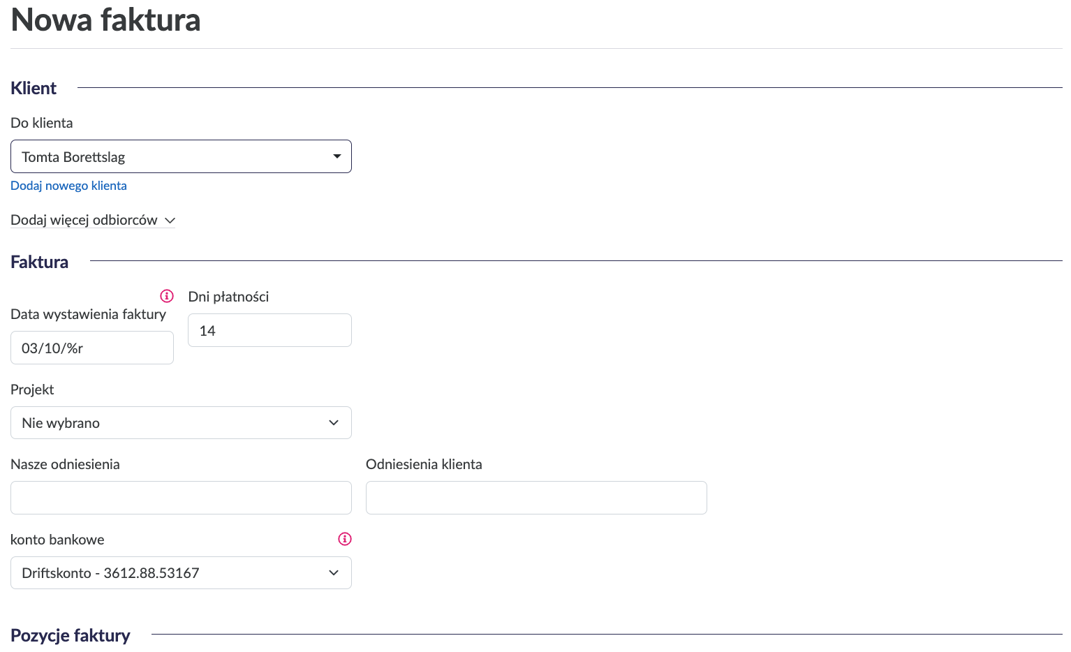 W Luca językiem na samej fakturze będzie zatem norweski (domyślnie) lub angielski, jeśli wybierzesz tak w ustawieniach języka. Odbywa się to automatycznie, niezależnie od tego, czy sam ustawiłeś język użytkownika na polski.